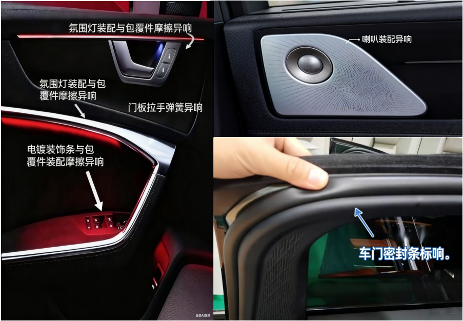 车门内饰板是不同装饰件和功能部件高度集合的位置,也是产生摩擦异响较多的三大内饰部件之一,来自车门部件的异响是电动车异响Top3之一。对包覆层皮革材料进行消音降噪主要的手段就是采用干膜型润滑剂,既起到消除异响的效果,又对皮革材料的表面和外观没有任何影响。