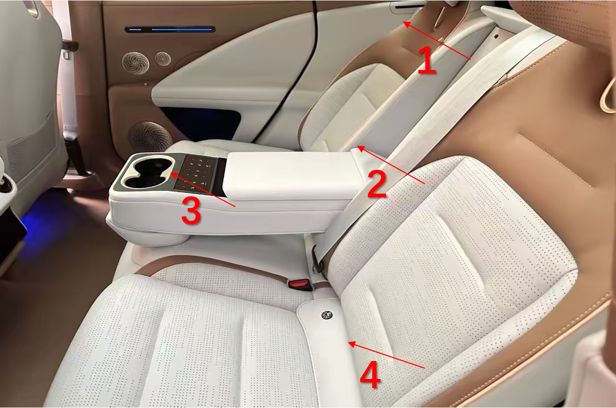 3、后排座椅扶手盖板卡扣、饰条按压异响